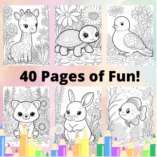 Niedliche Malvorlagen mit Tierbabys für Kinder und Kleinkinder, druckbare Malvorlagen für Kinder, Aktivität für Geburtstagspartys mit Tierbabys, Malbuch PDF