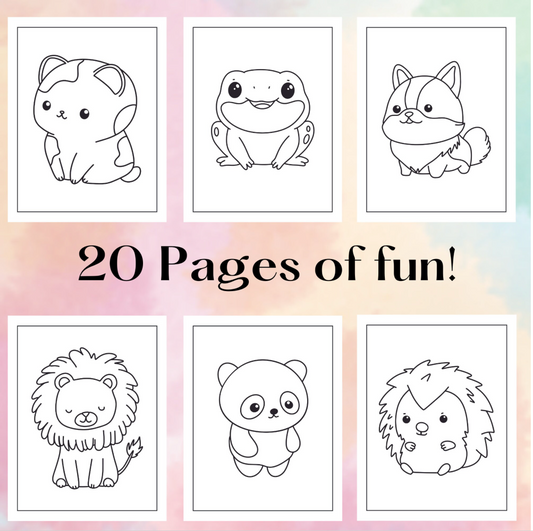 Niedliche Malvorlagen mit Tieren für Kinder und Erwachsene, ausdruckbare Malvorlagen mit Tieren, Malbuch für Kinder, ausdruckbar für den Heimunterricht, Kawaii-Malvorlagen