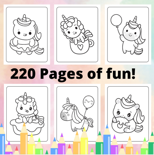 Einhorn-Malseiten für Kinder, Einhorn-Malseiten zum Ausdrucken für Kinder, Malbuch für Kinder, Einhorn-Malbuch, Kawaii-Malseiten