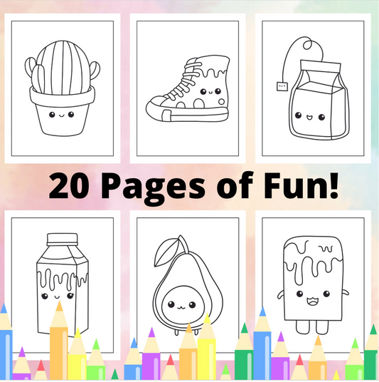 Süßes Kawaii-Malbuch für Kinder, Jugendliche und Erwachsene, Malseiten für Kinder, druckbares Malbuch, digitaler Download von Kawaii-Malseiten