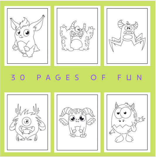 30 süße Monster-Malvorlagen zum Ausdrucken für Kinder und Kleinkinder, einfaches süßes Monster-Malbuch, Monster-Party-Aktivität zum Ausdrucken
