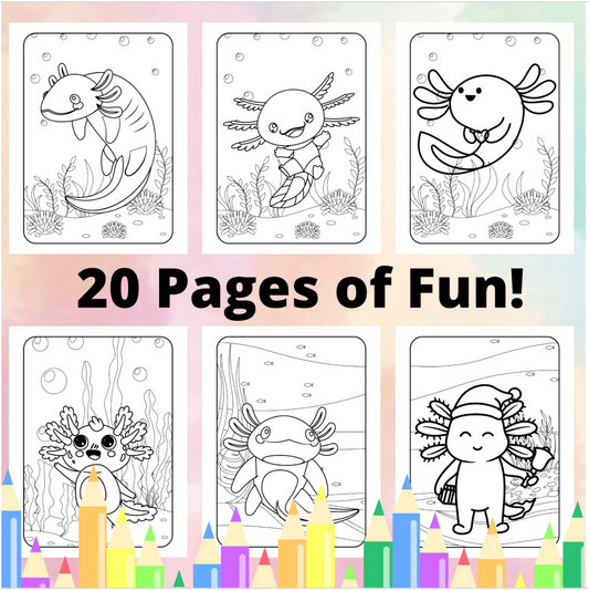 Süße Axotol-Malvorlagen, druckbare Axotol-Malvorlagen für Kinder, Malbuch für Kinder, Axotol-Geburtstagsparty-Aktivität, Kawaii-Malvorlagen