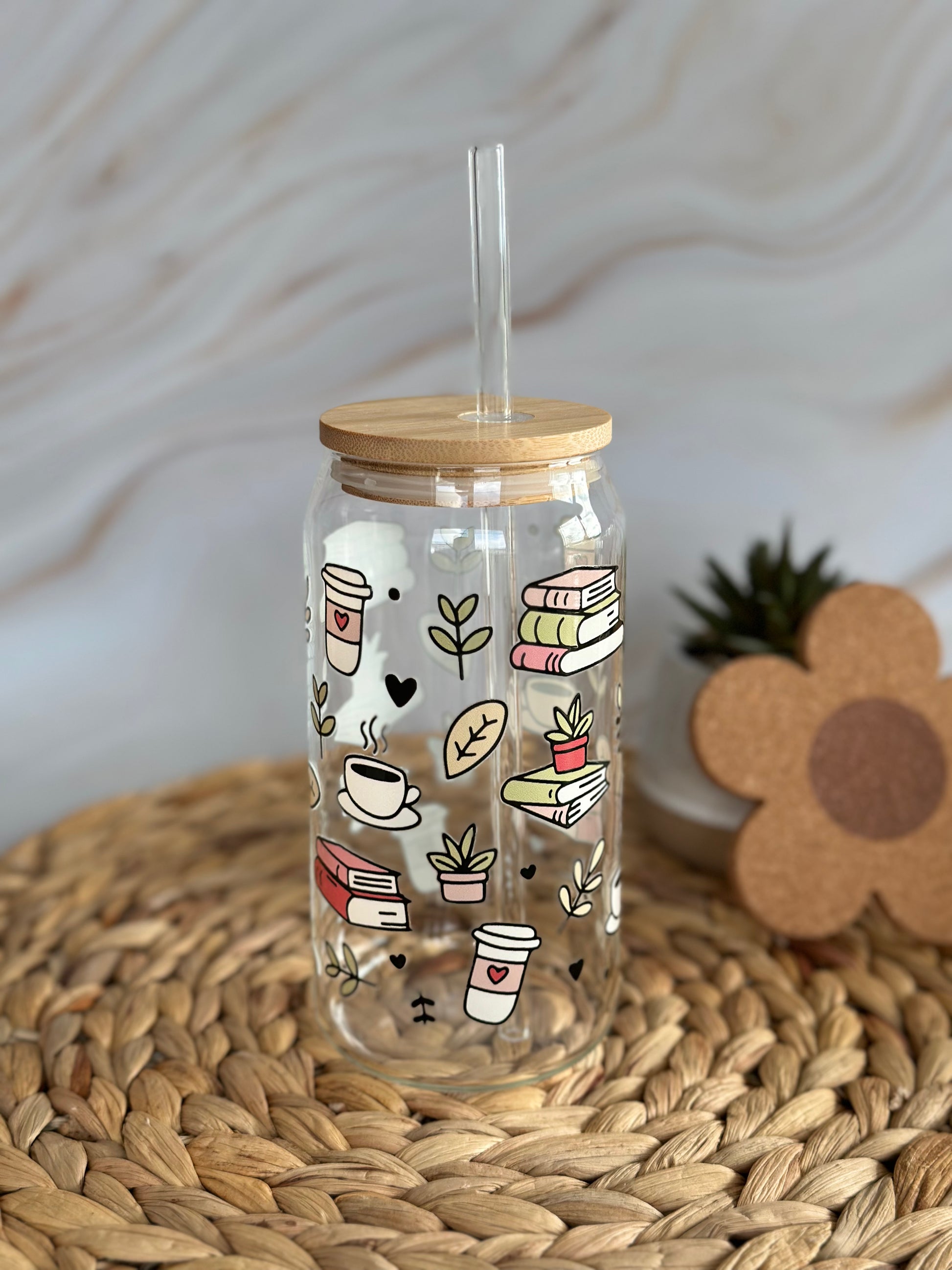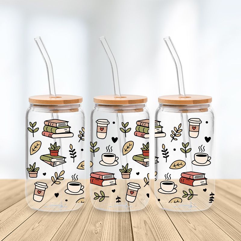 Book Plant & Coffee Lovers Glass Cup