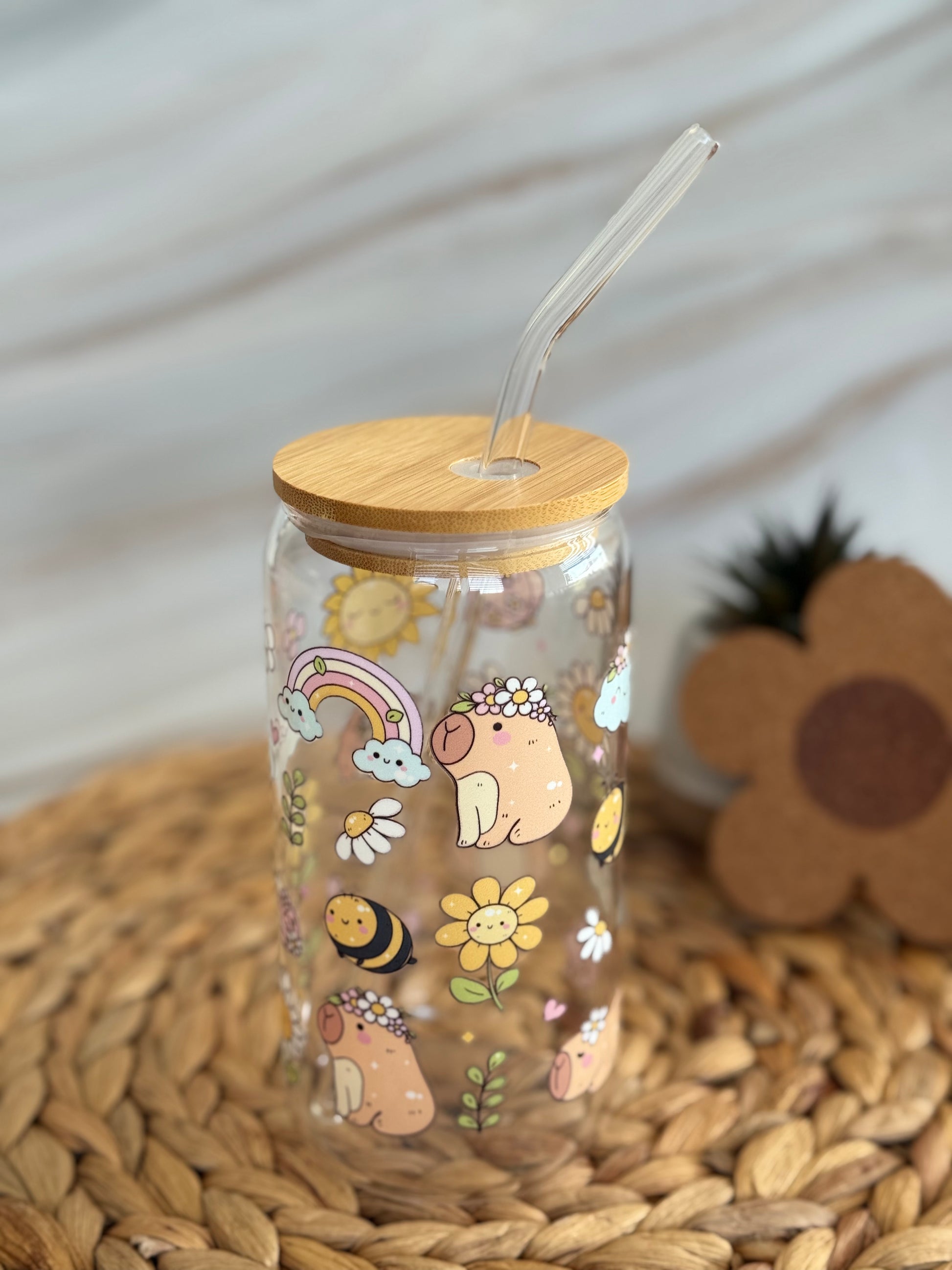 💚🍃 Bambusdeckel + Strohhalm inklusive 💚🍃 Glas fasst 500 ml