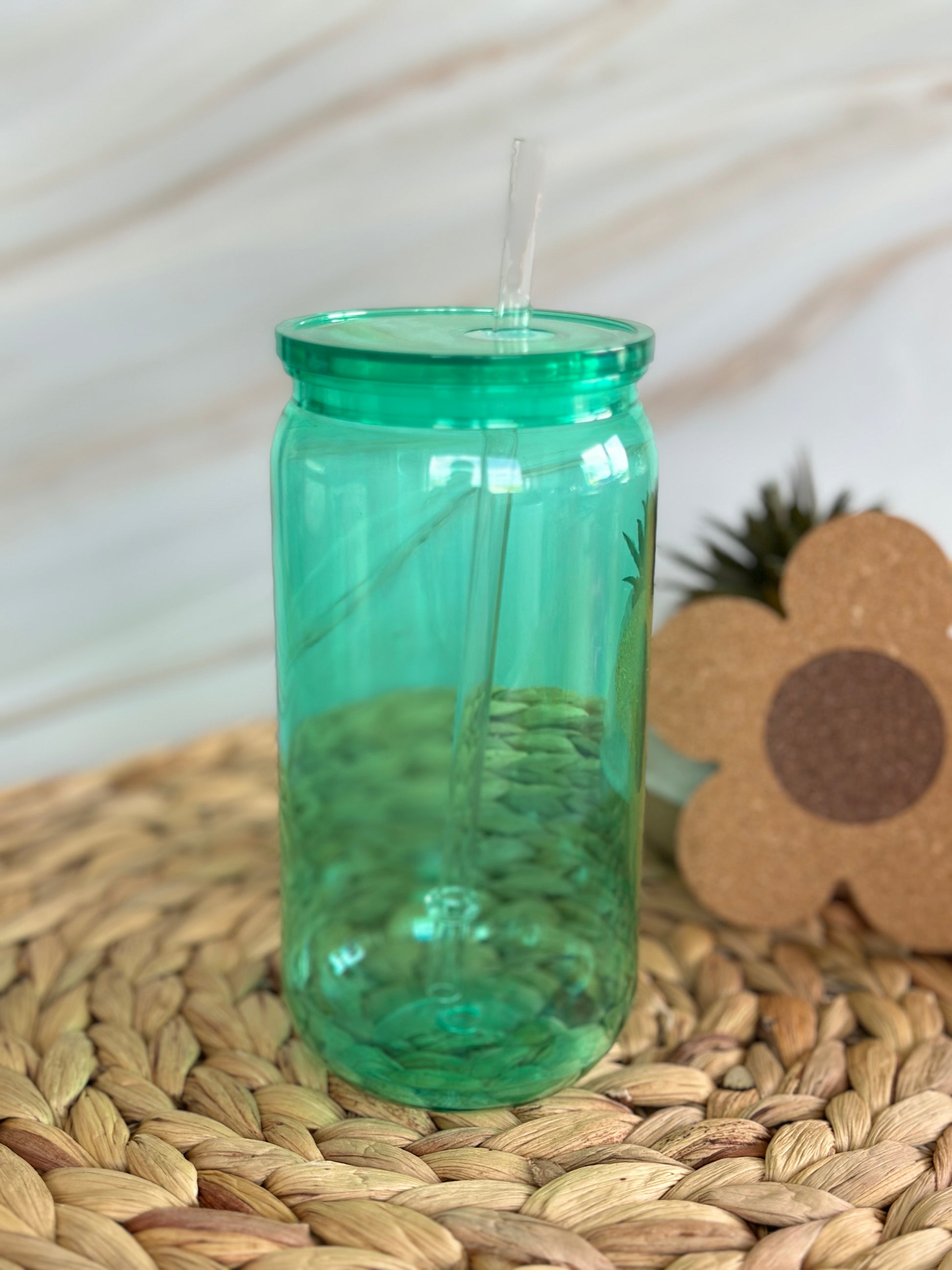 💚🍃 Plastikdeckel + Plastikstrohhalm inklusive 💚🍃 Glas fasst 500ml