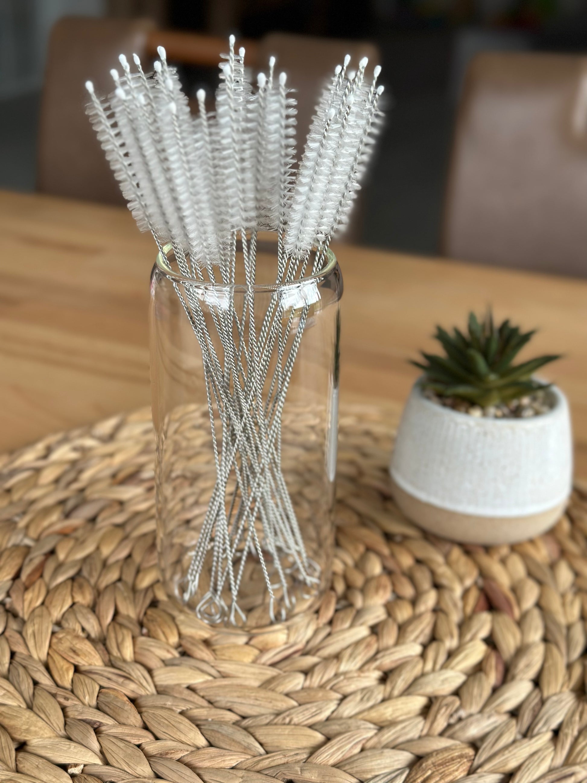Verabschieden Sie sich vom Smoothie der letzten Nacht! Mit unserem Strohhalmreiniger können Sie Ihre Strohhalme ganz einfach glänzen lassen und sie für das nächste köstliche Getränk bereit halten. Nur ein paar Wischbewegungen und Sie haben im Handumdrehen einen sauberen Strohhalm!