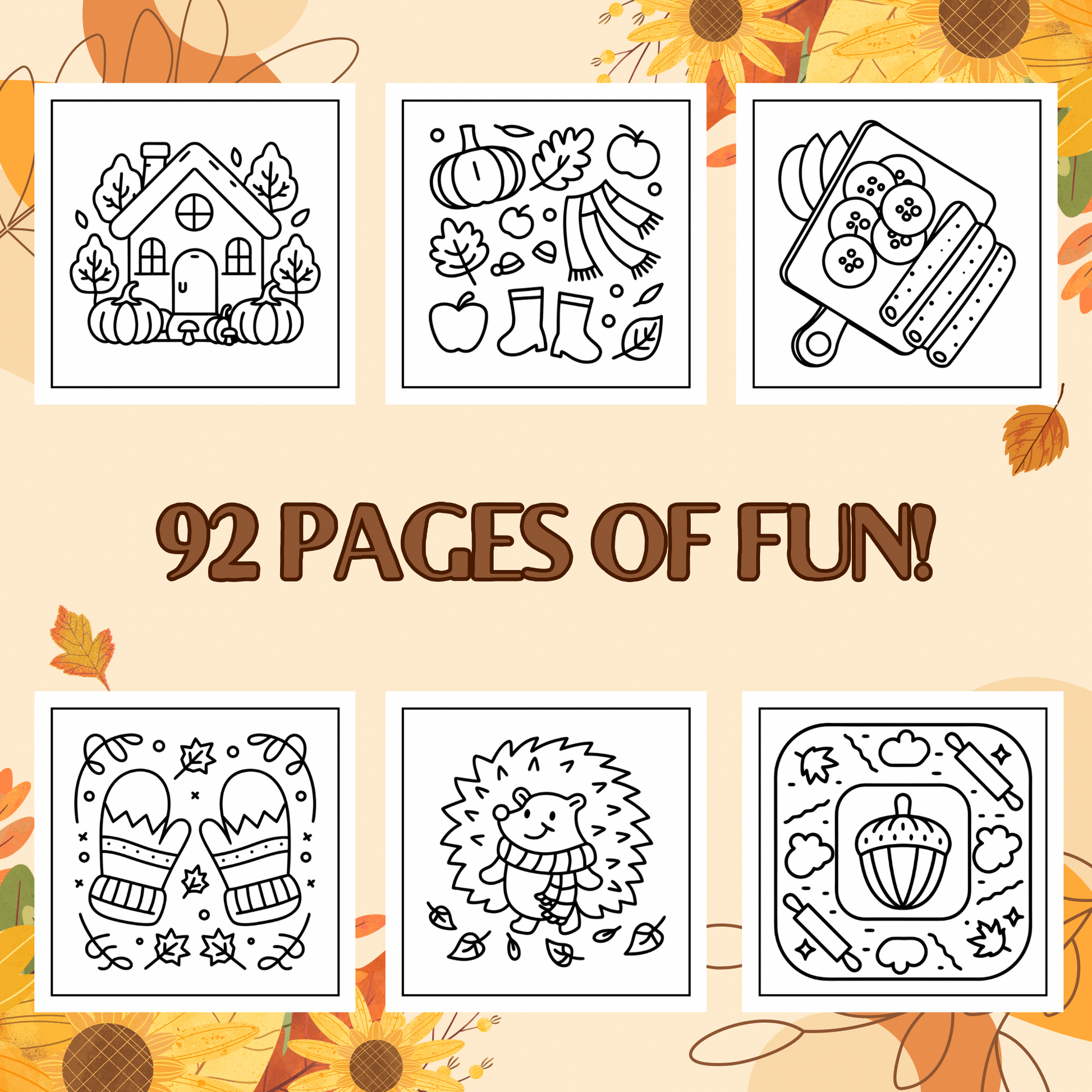 - 92 unique autumn-themed coloring pages